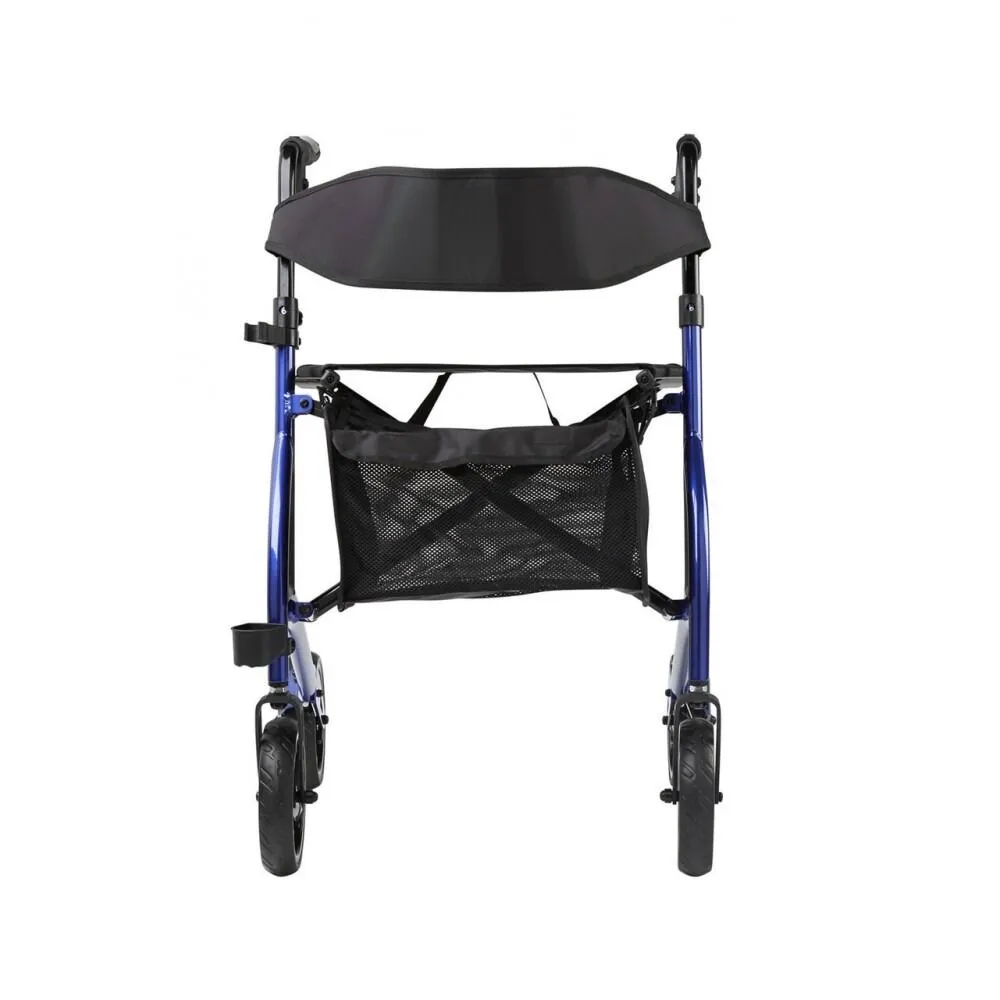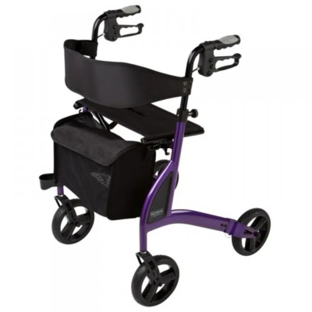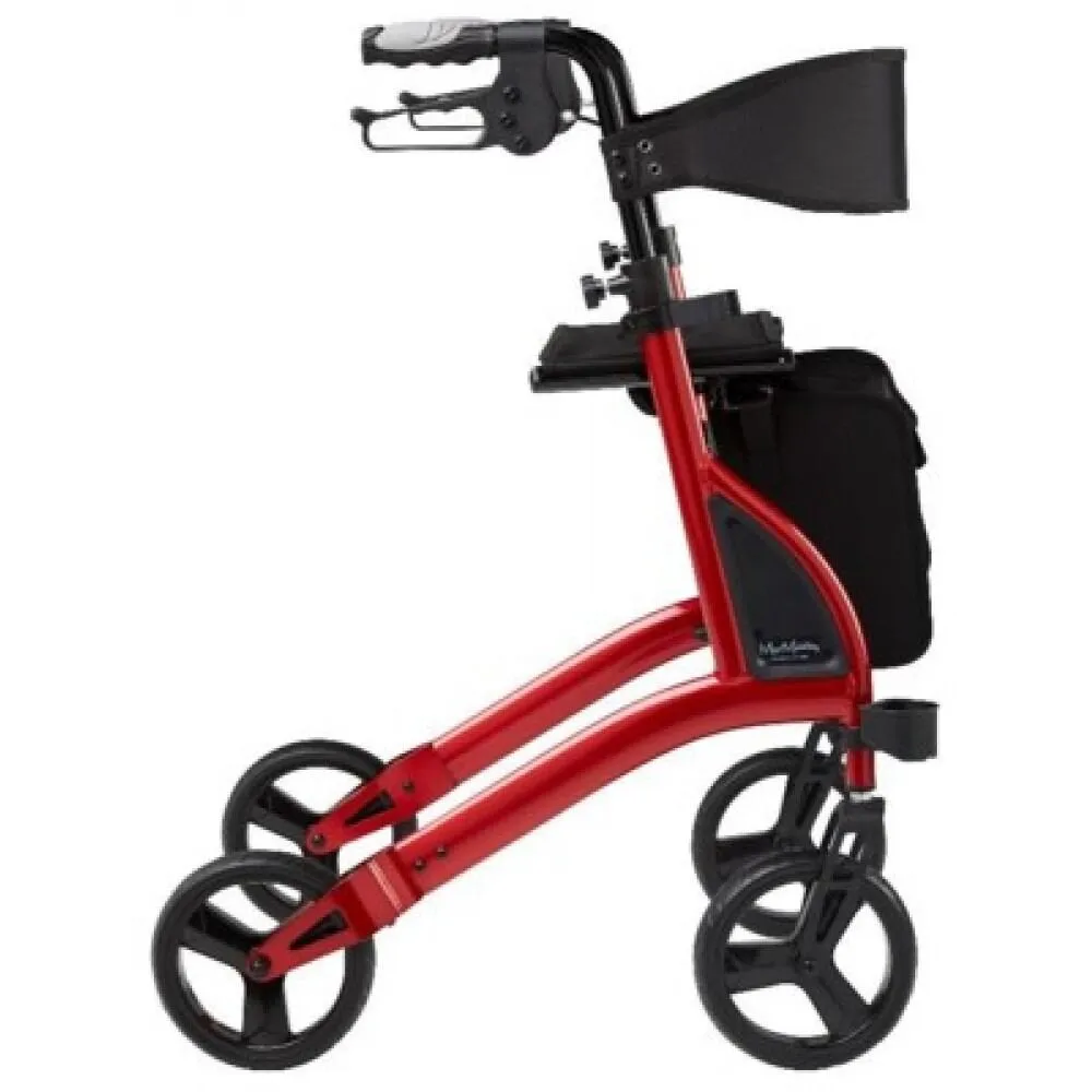A 4 wheel walker with an aluminium ‘X-fold’ frame that folds sideways and is able to stand up on its own while folded. Suitable for indoor and outdoor use.