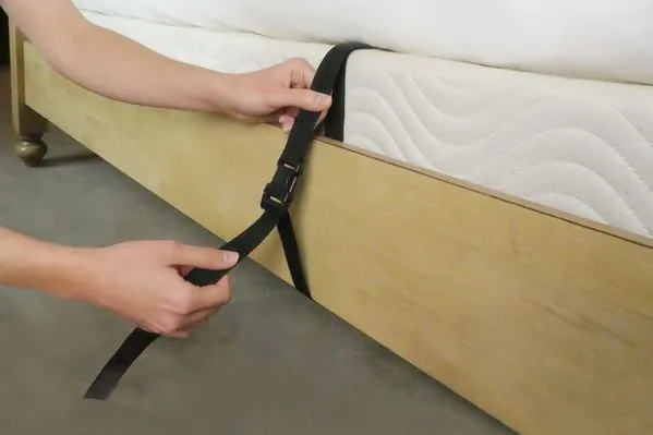 Attaches to most any home or common adjustable bed with included safety strap. Fits mattress height of 10″- 17″