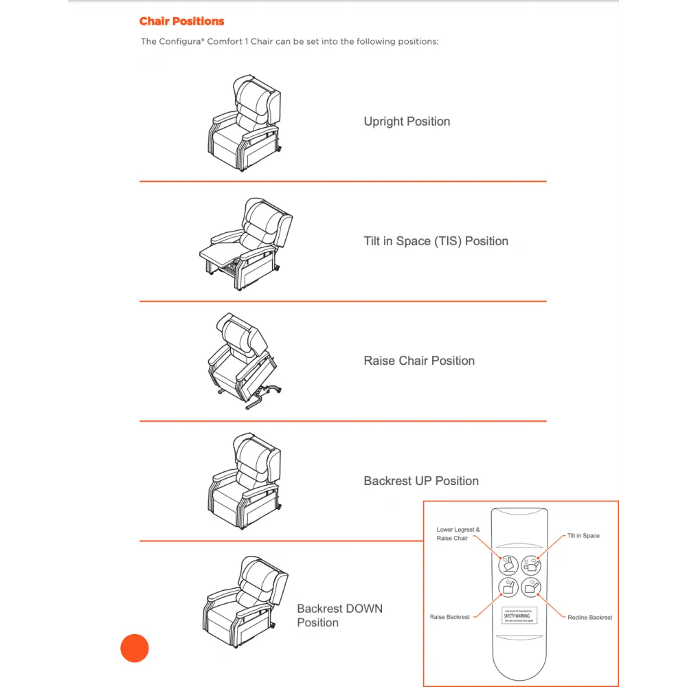 The Configura Comfort Chair is an electric lift recliner chair appropriate for: