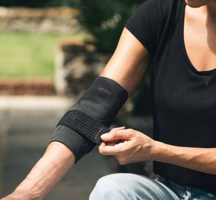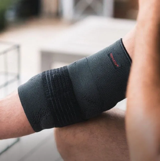 he DonJoy Condilax Elastic Elbow Support is an anatomically knitted and multidirectional elastic fabric brace for support and compression.