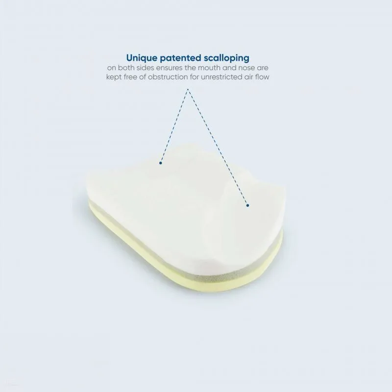 Premium Australian made memory foam sleep apnea pillow compatible with CPAP masks. Purpose designed to encourage easier breathing and assist sufferers of sleep apnea. Specially scalloped to allow unobstructed airflow to nose and mouth.
