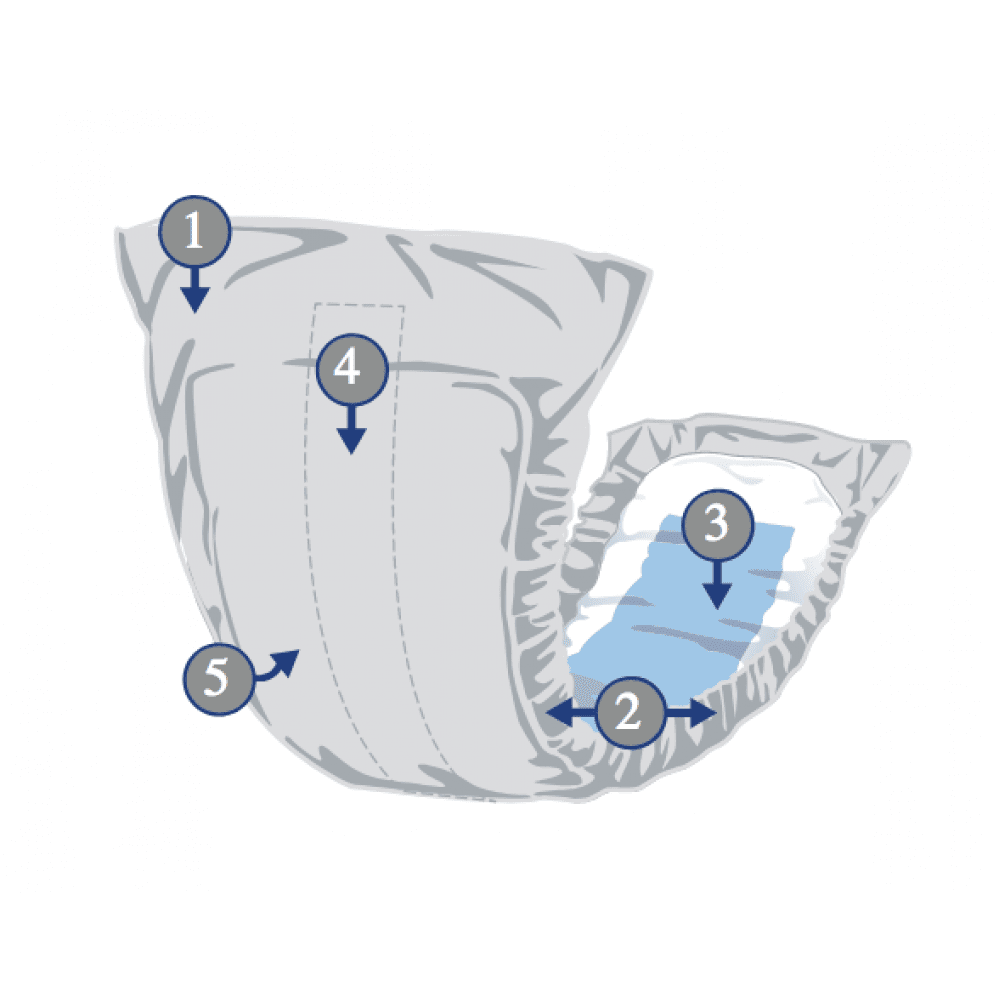 - Elastic gathers to help prevent leaks