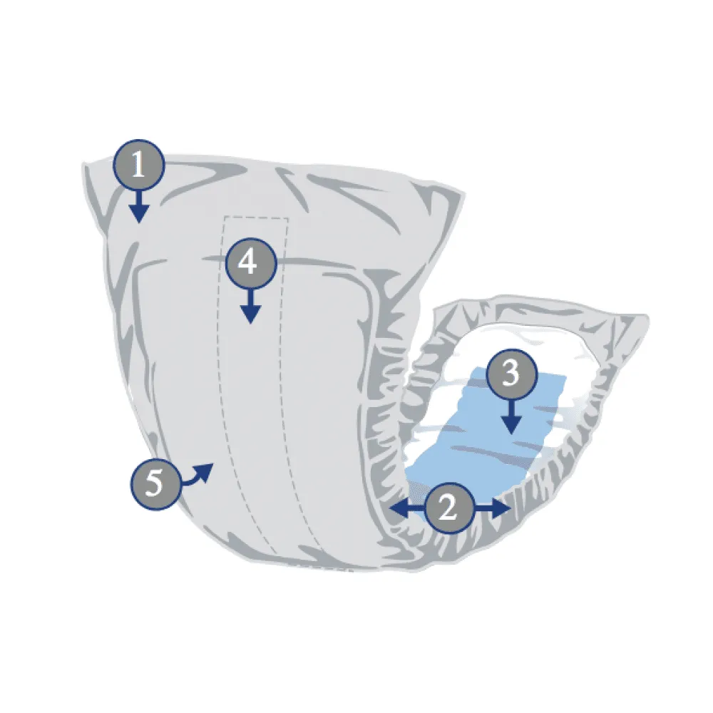 - The super absorbent core with fast acquisition layer provides optimal dryness and protection