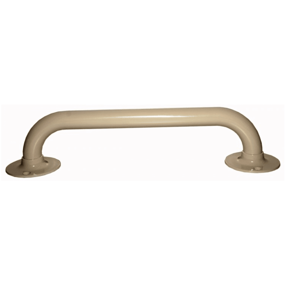 This robust and durable almond powder coated grab rail comes with fixings for securing to walls*.