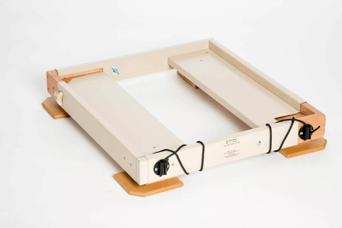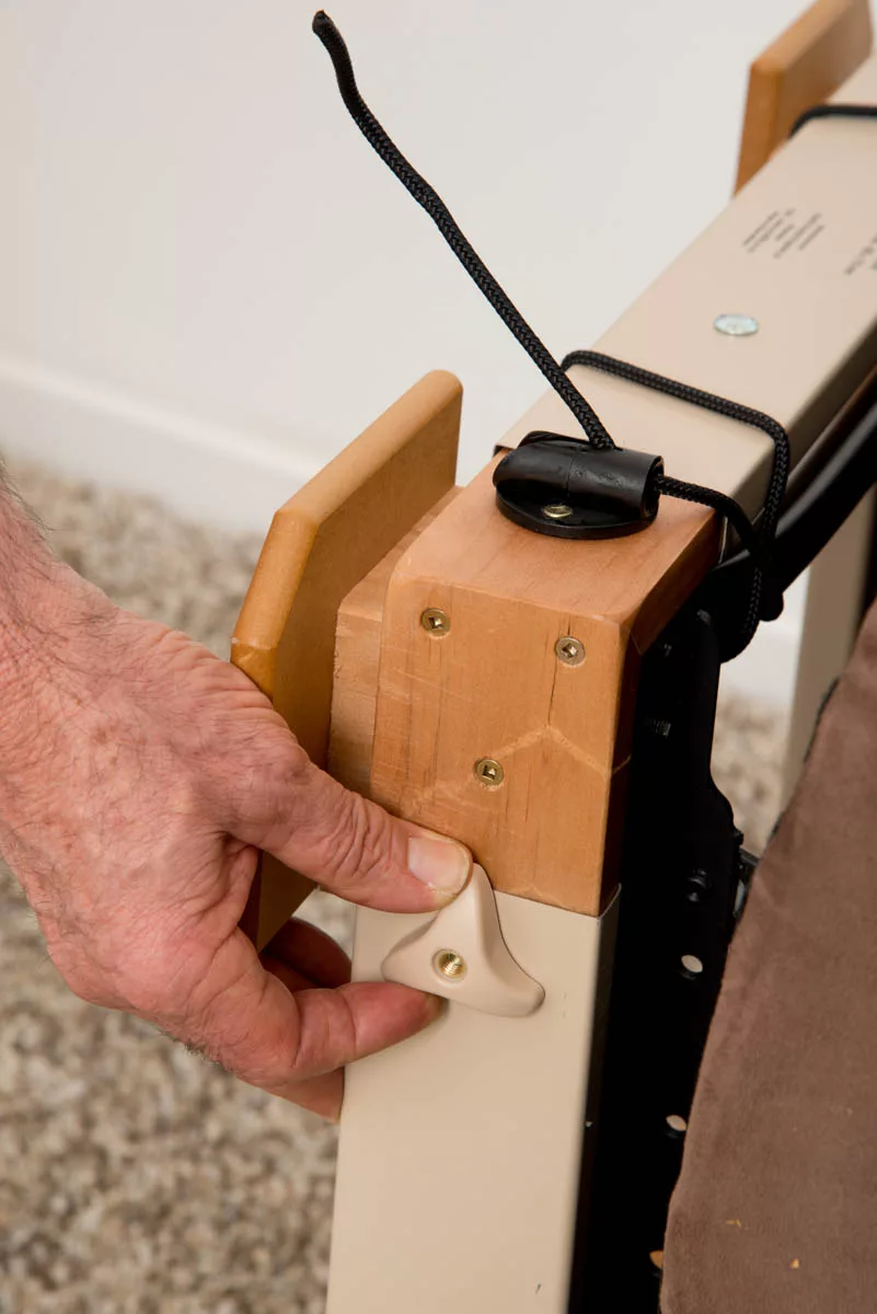 Easy to fit Simply extend the raiser in width and length to suit the frame spacing on the base of your chair. Place the chair on top of the Raiser. Adjust the Raiser so that it fits tightly up to the frame of your chair. Tighten the four clamping wing nuts on each side of the Raiser. Now loop the the braided cord over the steel base frame of your chair at the rear and secure the braided cord into the cleat on the Raiser.