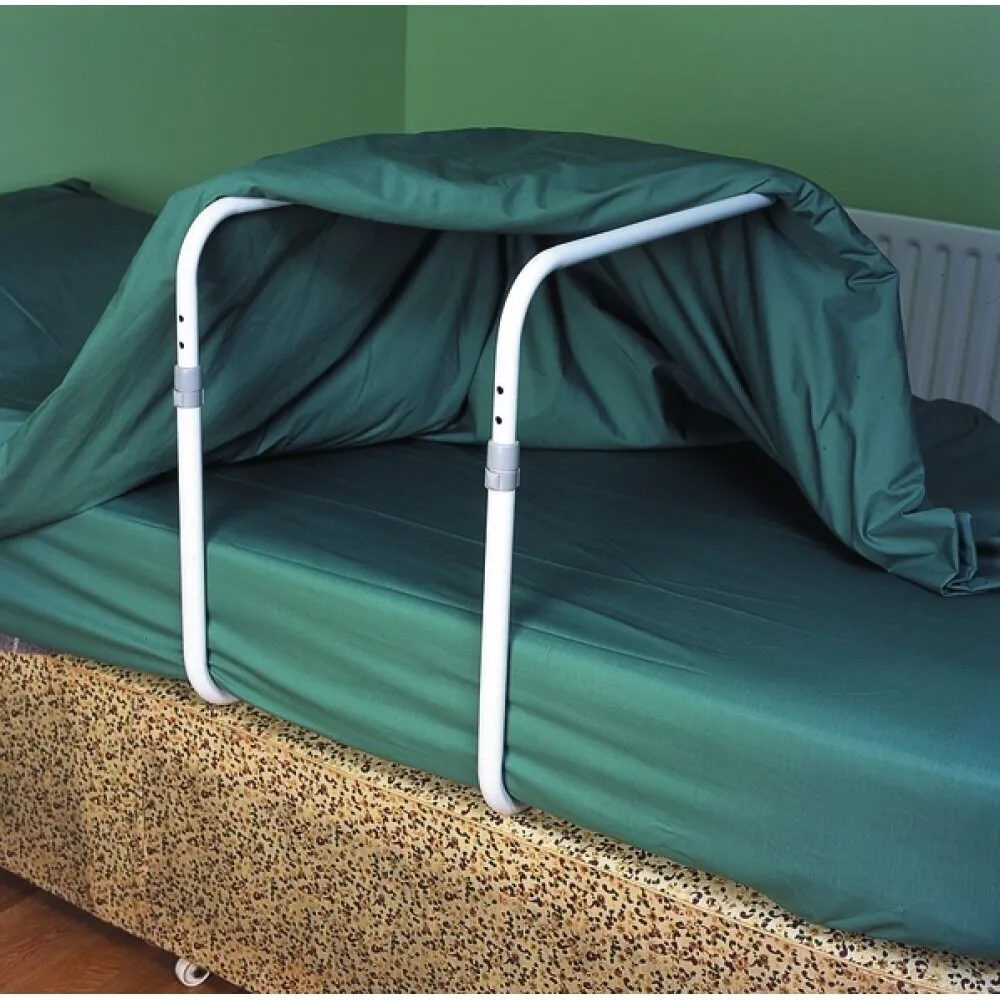 A frame that fits under your mattress and curves above your bed to keep sheets away from your body.