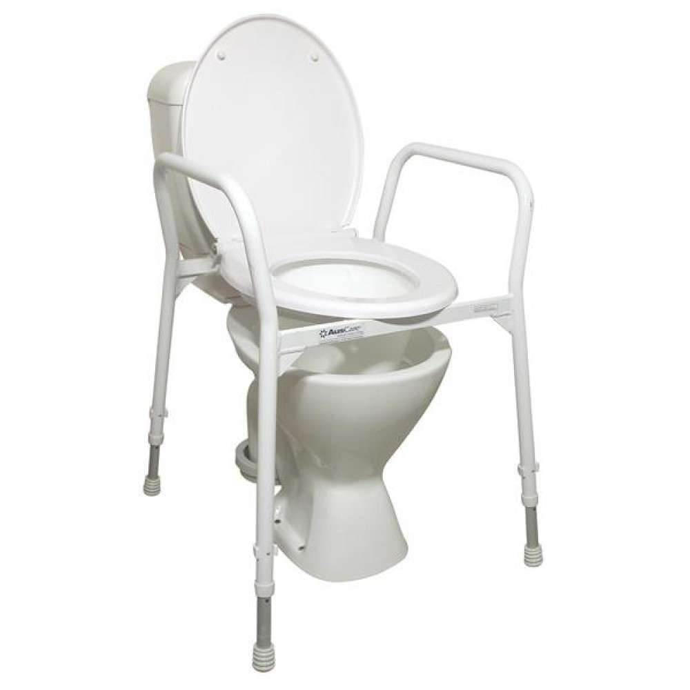 In some homes the toilet may be positioned too low for those who have difficulty bending or lowering themselves, particularly those who may be requiring or recovering from a hip replacement. Raising the height of the toilet seat makes toileting much safer & easier. Over Toilet Frames with a seat & lid, have arms for added stability, support & grip, while the legs are height adjustable.
