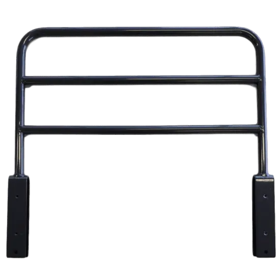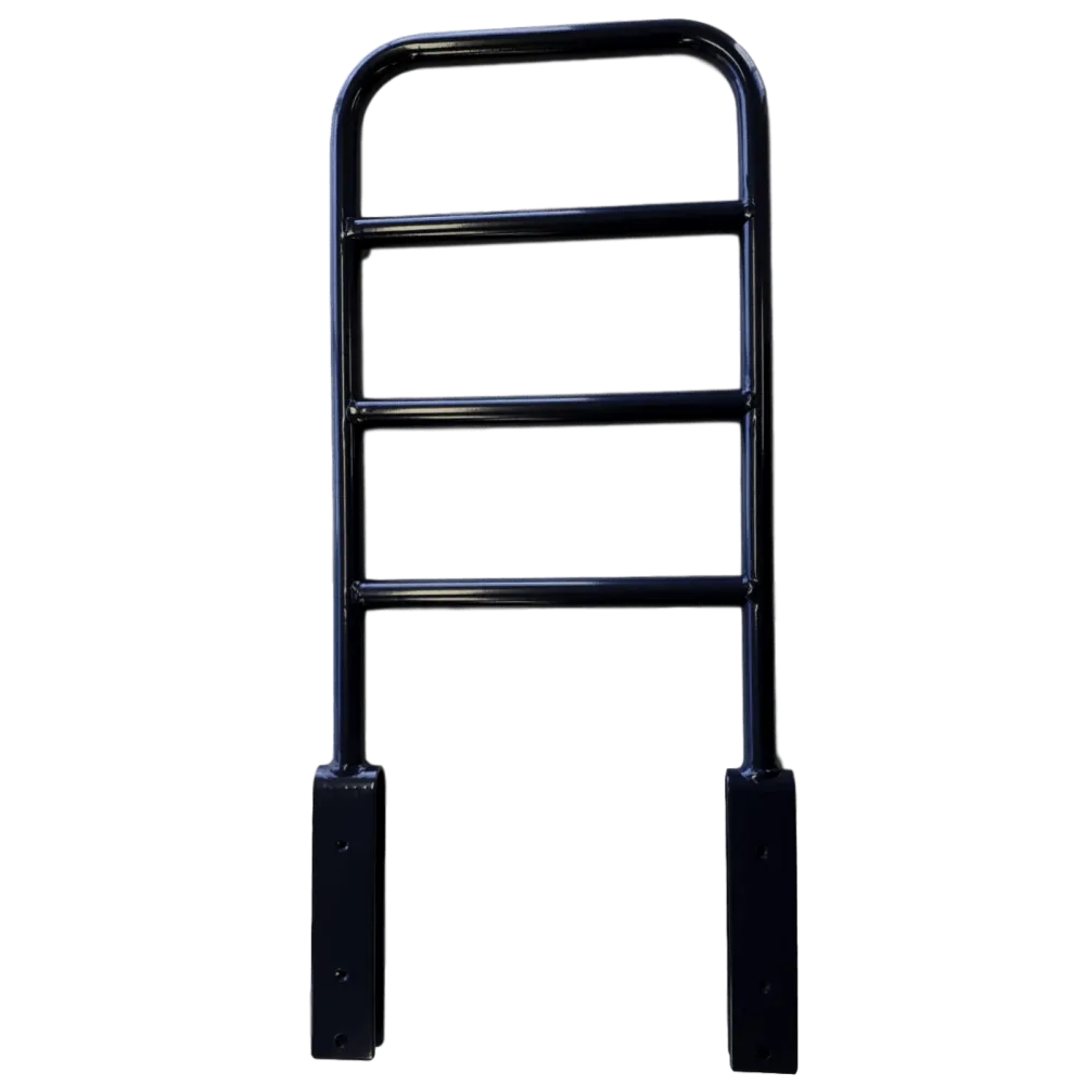 Slip on attach system with four rails for maximum safety. Rail folds to feet.