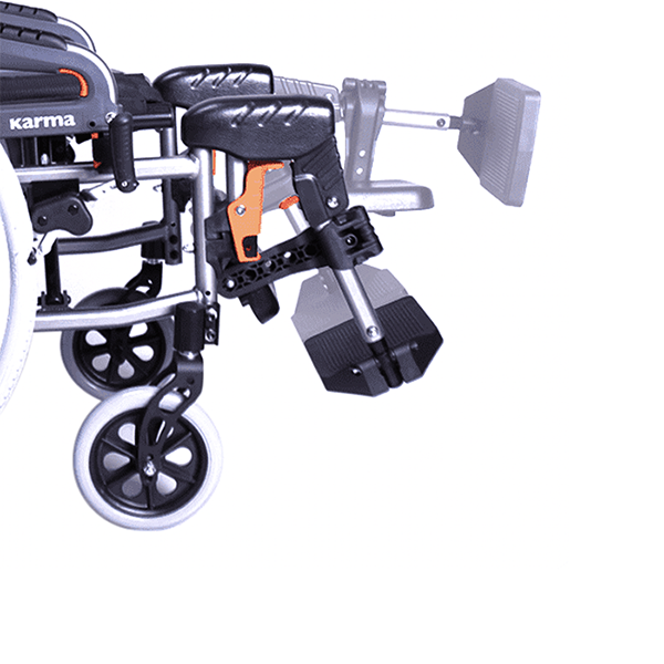 90-degree Legrest & Adjustable Footplate – The footplate can be set to multiple different positions and angles.