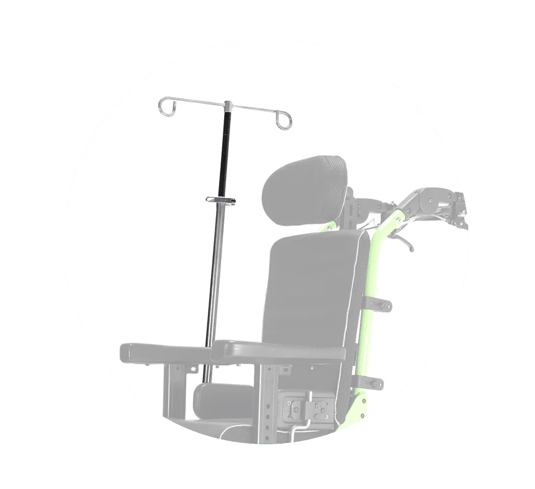 Ideal for users who frequently visit the hospital for injection treatments, this I.V. pole has step-less length adjustments. Note: the wheelchair must be equipped with anti-tippers when using the I.V. Pole Holder for the user’s safety.