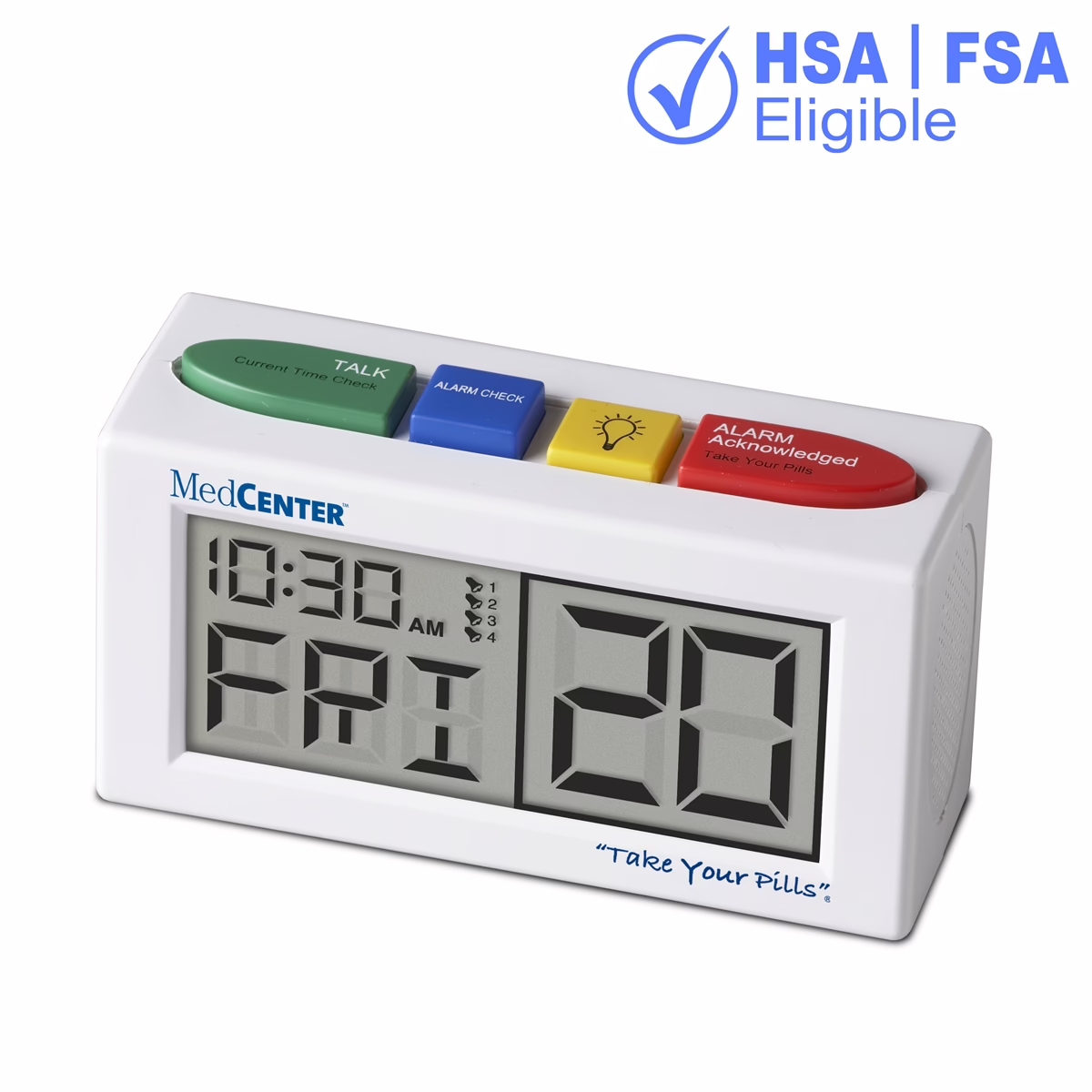 - Extra loud dual speakers make the MedCenter clock simple and easy to use