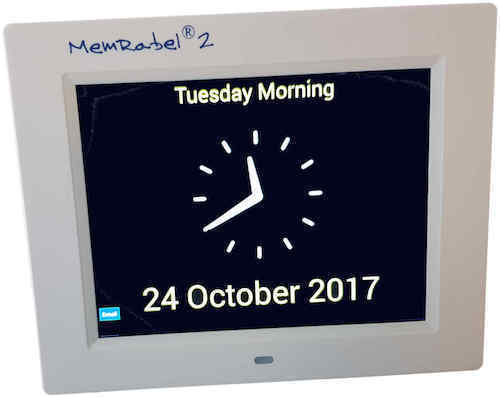 Perfect for people living with Alzheimers, dementia, or other chronic illness or disabilities, the Memrabel 2 is a visually appealing calendar clock with a high quality, bright contrast display, showing the full time, day, time of day, date, month and year, to avoid those repetitive questions about ‘what time is it’?