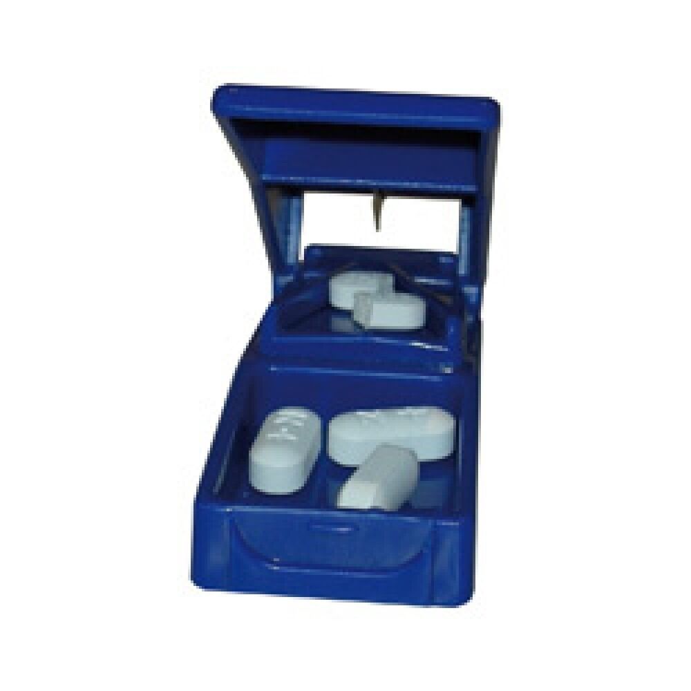 - Two compartments to store whole and split pills.