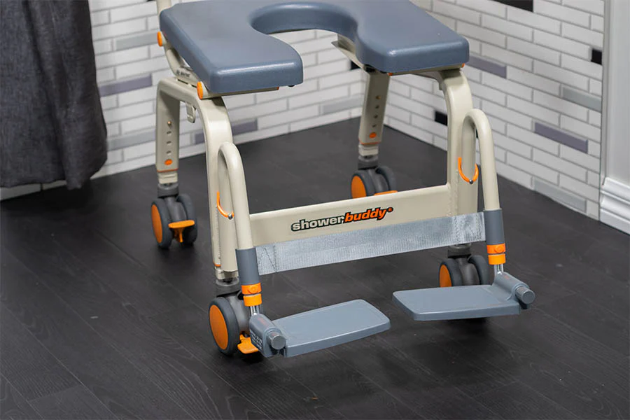For users with bathrooms containing roll-in showers that may be shared with other family members, the Roll-InBuddy Lite is a smart choice. A carer can securely roll a user into the shower, lock the unit to the floor and provide showering assistance without issue.