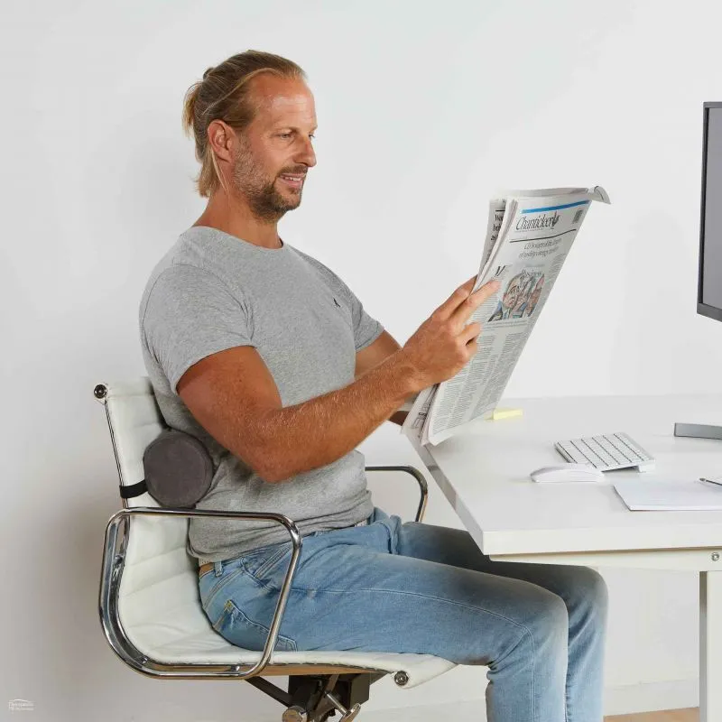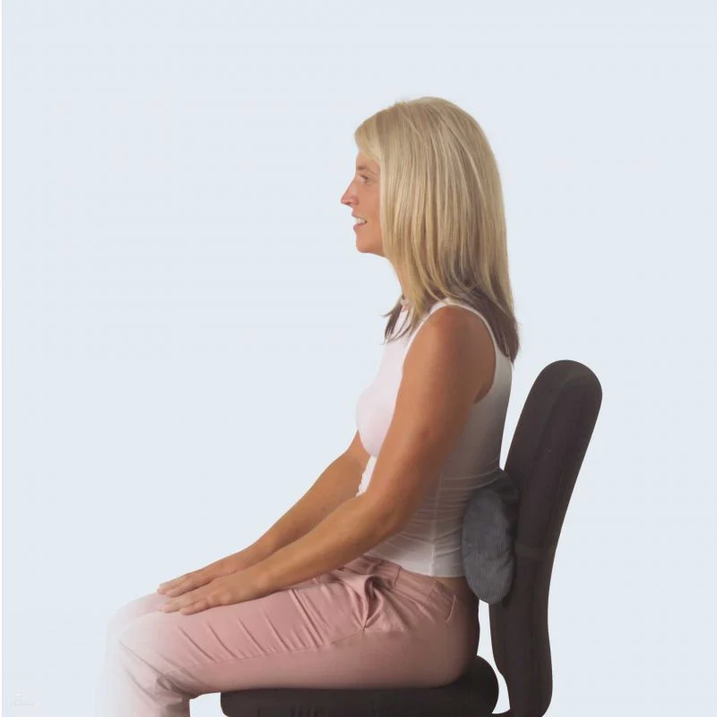 A simple yet effective chiropractic back support that compensates for one\’s natural tendency to slouch when seated by filling in the hollow in the back and in turn supporting the lumbar curve.