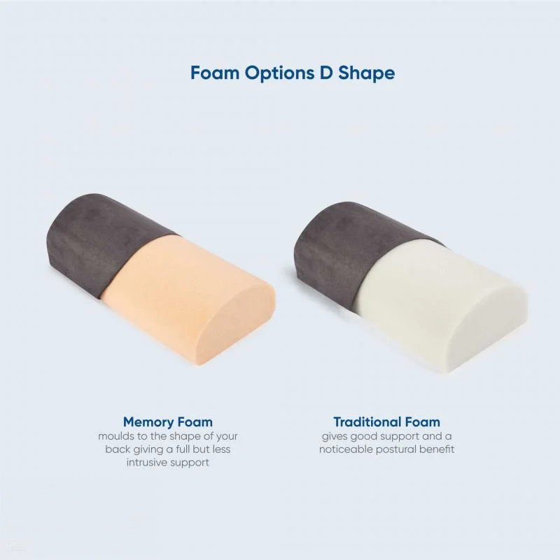 Oval (Traditional Foam): Very similar in size to the Demi-D shape Lumbar Roll, but with its curved shape it will be slightly more pronounced in its support without feeling too rigid. Good for smaller body frames. Typically suits smaller to medium body frames.