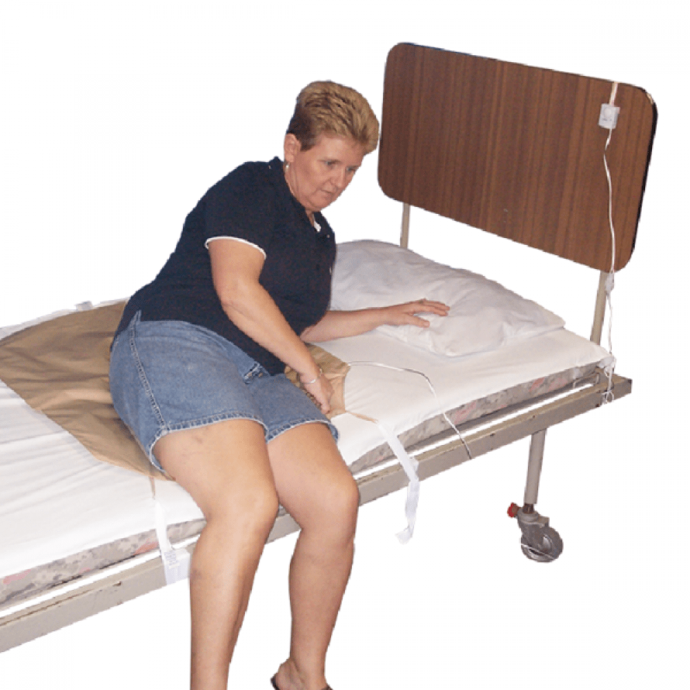 The Stand Up Bed Alarm is placed on top of the mattress underneath the bottom bed sheets. It is triggered when the person gets out of bed.