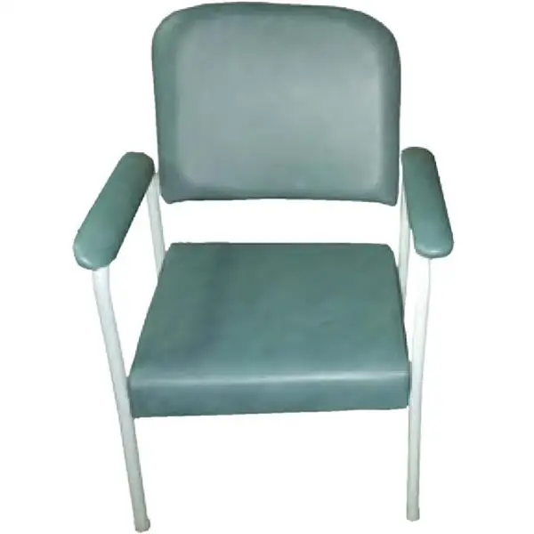 - Contoured backrest, padded armrests, and vinyl upholstery