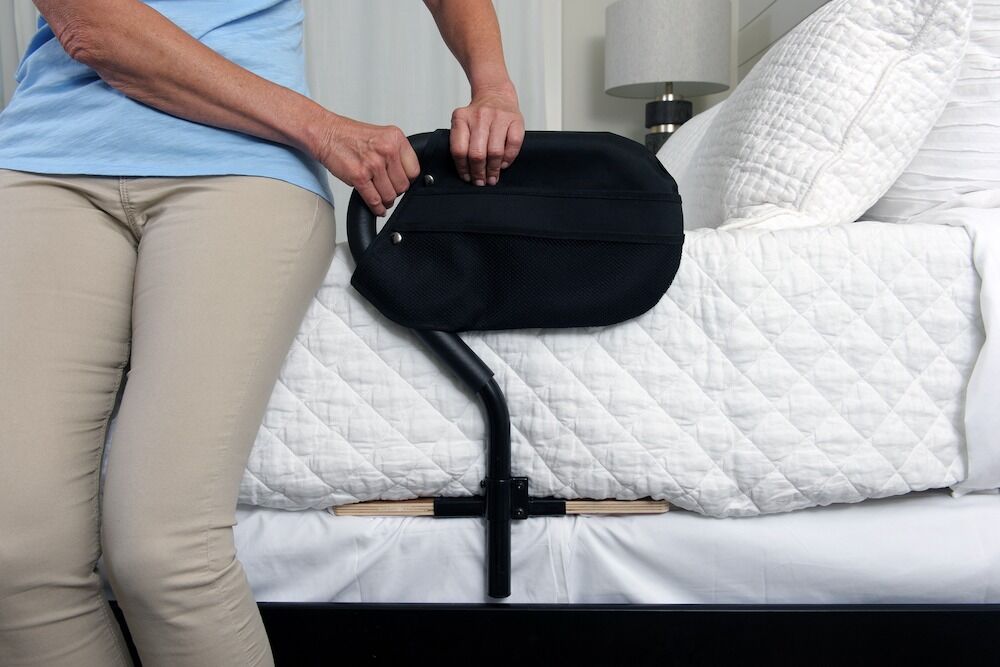 - EASY TO INSTALL: The BedCane slips between the mattress and box spring/slats and attaches to the bedframe with the included safety strap.
