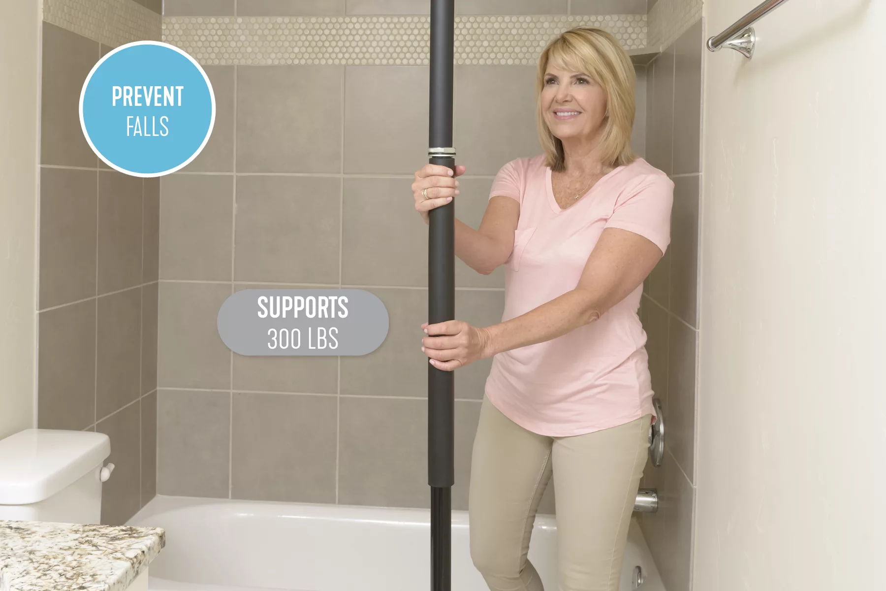 - Tension-Mounted: Easily install the transfer pole anywhere in the house by tightening the pole to create tension between the floor or ceiling.